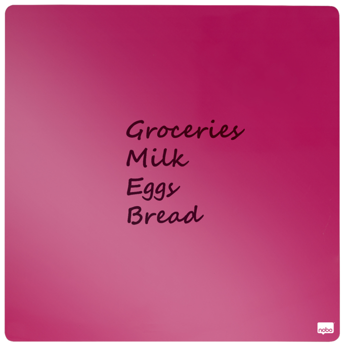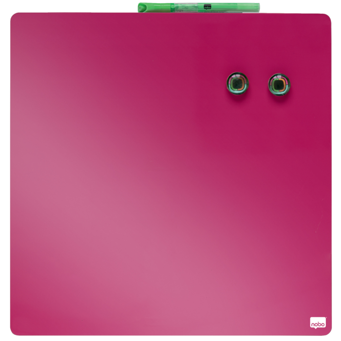 Magnetické, za sucha mazateľné tabule z bezrámčekových štvorcových dielcov Rexel. Obsahujú dva magnety, popisovač GlowWrite mazateľný za sucha, montážne magnety a penovú lepiacu pásku. Modulárny systém - dajú sa kombinovať navzájom alebo i s ostatnými nástenkami a popisovacími tabuľami Rexel. 360 × 360 mm. Farba ružová.