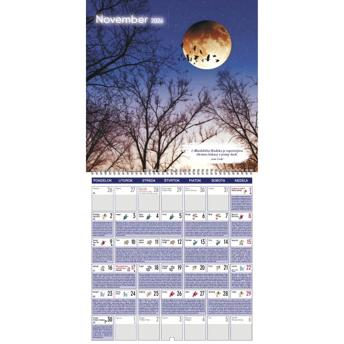 Nástenný kalendár 30 x 30 cm Lunárny 2026