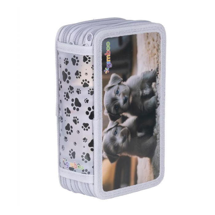 Peračník GIMBOO 3-zipsový plný, Šteniatka, sivý