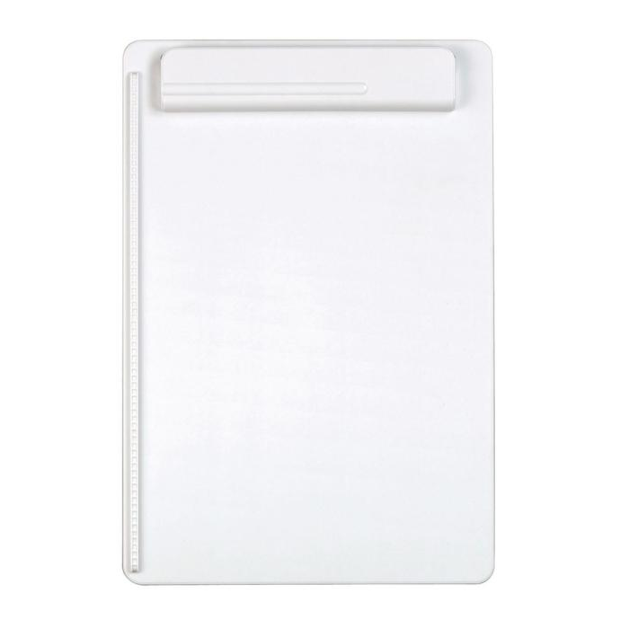 Podložka na písanie z recyklovaného plastu, vyrobená udržateľným a sociálne zodpovedným spôsobom. Zarážka papiera vľavo, integrovaný držiak na písacie potreby. Široká svorka so silnými kovovými pružinami. Šírka spony cca 0,8 cm, hrúbka 0,3 cm. Rozmer 34,3 x 23,3 x 1,6 cm. Farba biela.