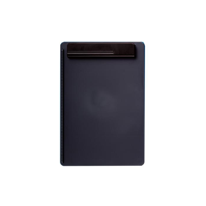 Podložka na písanie z recyklovaného plastu, vyrobená udržateľným a sociálne zodpovedným spôsobom. Zarážka papiera vľavo, integrovaný držiak na písacie potreby. Široká svorka so silnými kovovými pružinami. Šírka spony cca 0,8 cm, hrúbka 0,3 cm. Rozmer 34,3 x 23,3 x 1,6 cm. Farba čierna.