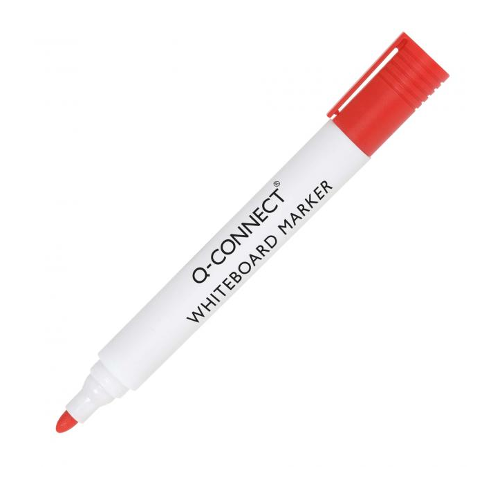 Popisovač na biele tabule. Telo plastové, klip. Hrot okrúhly, šírka stopy 1,5 - 3 mm. Väčšie balenie 10 ks v jednej farbe. Farba červená.