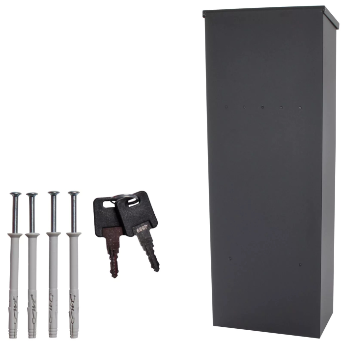Objavte všetky výhody stojanovej poštovej schránky pre balíky ale aj klasickú poštu. Veľký horný vhod pre balíky a poštu. Po tom, ako vám váš poštár doručí balík, stačí iba otvoriť veľké dvierka na bočnej strane schránky a balík je váš. Doručená pošta a balíky sú bezpečne uzamknuté za klasickým cylindrickým zámkom. Stojanovú poštovú schránku môžete voľne položiť na požadované miesto alebo ju pre každý prípad ukotviť. Kotviaci materiál je súčasťou dodávky.