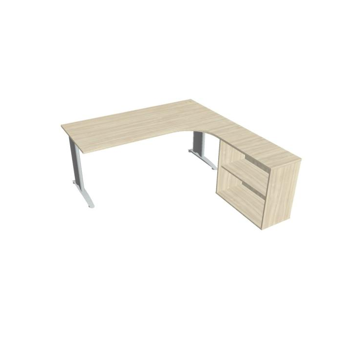 Pracovný stôl Flex, ergo, ľavý, 180x75,5x200,0 (80x40) cm, agát/kov