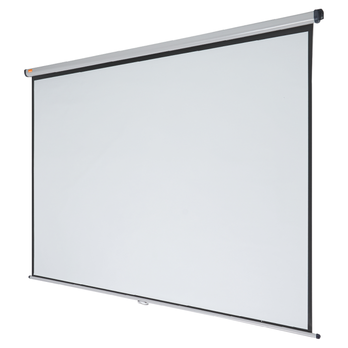 Žiarivý matne biely povrch plátna zaručuje ostrý, podrobný obraz, ktorý zreteľne uvidia všetci diváci. Dá sa ľahko zasunúť do puzdra, aby bolo chránené pred poškodením, alebo uložené, keď nie je používané. Doplnkové držiaky umožňujú inštalovať plátno pred popisovaciu tabuľu alebo ho skloniť smerom k divákom. 2400 × 1813 mm.