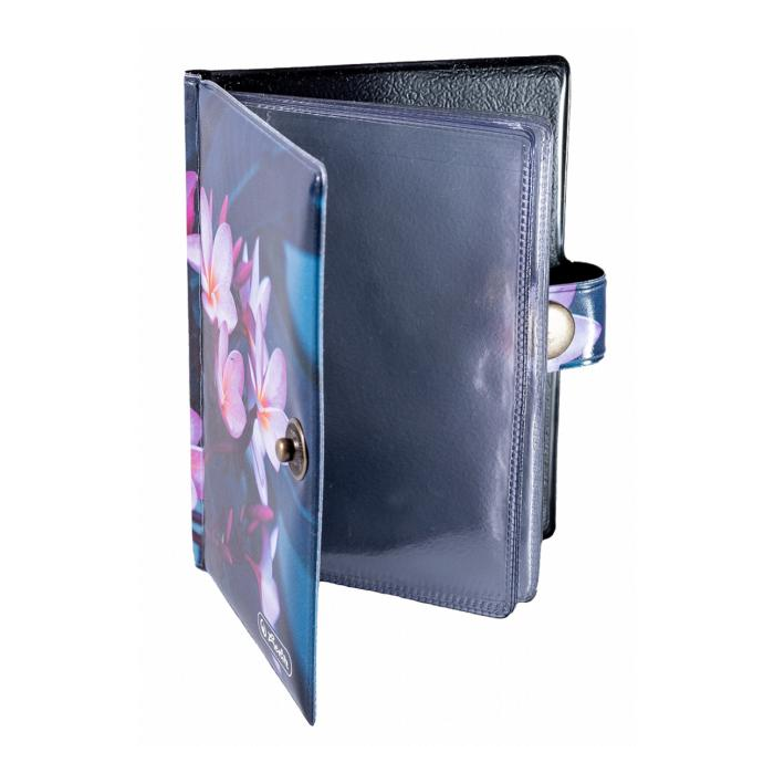 Puzdro na plastové karty - 10 listov, zatváranie s cvočkom. Rozmery 10 x 7,3 cm, mix motívov.
