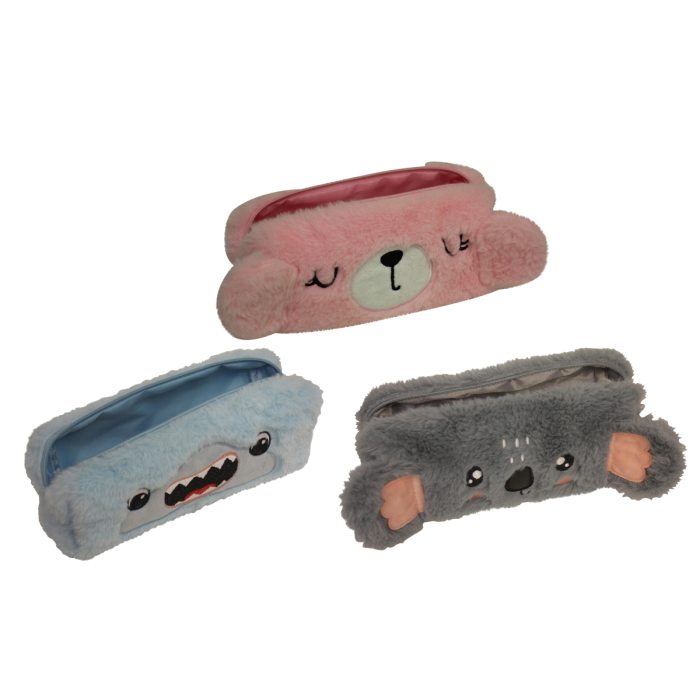 Puzdro na perá s 1 zipsom, 3 rôzne vzory/farby, plyšový materiál, s vyšívanými tváričkami zvieratiek a podšívkou. Rozmery ŠxVxH: 20,5x5x7 cm