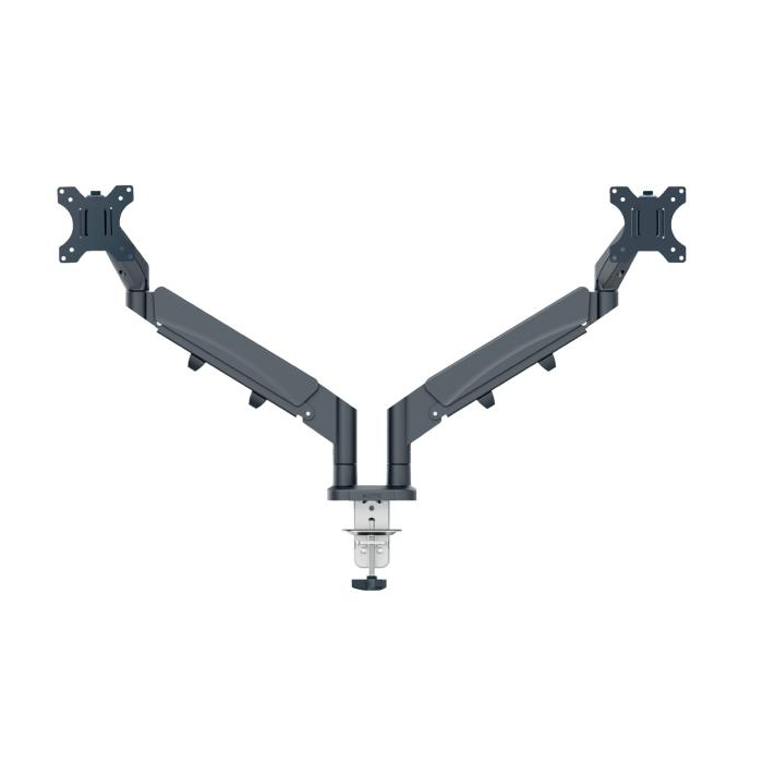 Robustný dizajn podporuje dva ploché alebo zakrivené 17`-32` monitory, každý s hmotnosťou do 9 kg.