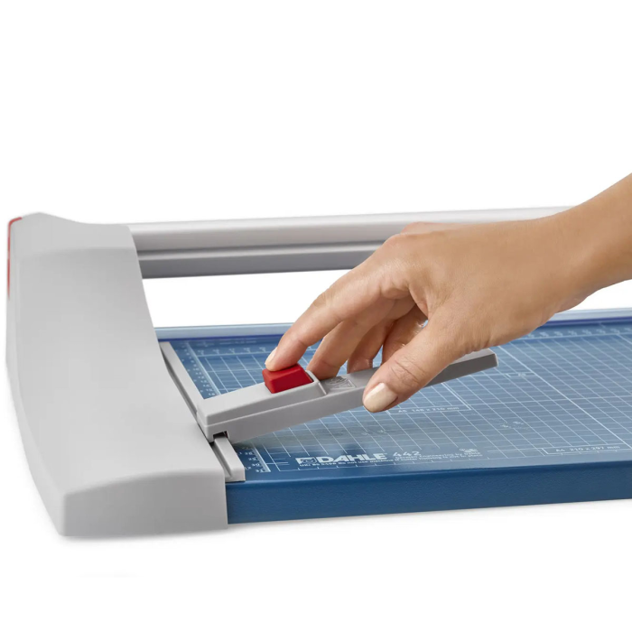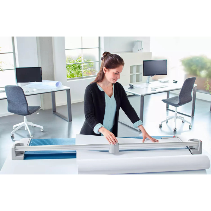 Profesionálna rezačka so stabilnou kovovou základňou s protišmykovými gumenými nožičkami a presným rezom na grafické účely (filmy, fólie, papier). Kvalita na dosiahnutie najvyššej presnosti - automatický prítlak pohybom rezacej hlavy, nastaviteľný zadný doraz s použitím na oba boky, množstvo zakreslených orientačných DIN formátov. Kruhový nôž umiestnený v plastovom ochrannom kryte sa automaticky brúsi pri rezaní o protinôž (oba nože z tvrdenej ocele). Mierka v cm/inch. Možnosť montáže na stenu.
