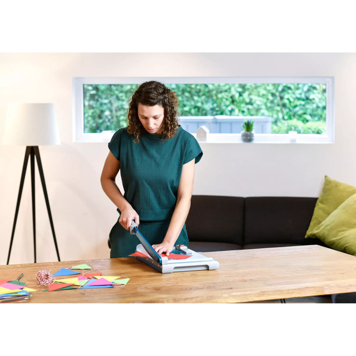 Kompaktná, protišmyková a presná rezačka z pevného oceľového plechu vhodná na rezanie papiera, kartónu, kože, plastu.