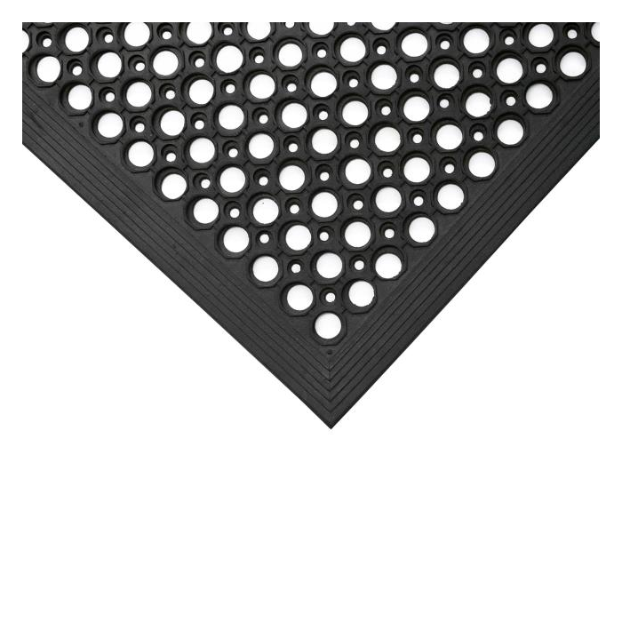 Exteriérová rohož vyrobená z odolnej gumy. Vyvýšený kruhový povrch slúži na zoškrabávanie sutín, blata a snehu z podrážok. Skosené hrany znižujú riziko zakopnutia a umožňujú plynulý prechod vozíkov a kočíkov. Výborná protišmyková úprava v súlade s normou EN 13552, protišmyková kategória R10. Výška rohože 10 mm. Rozmery 80 × 120 cm.