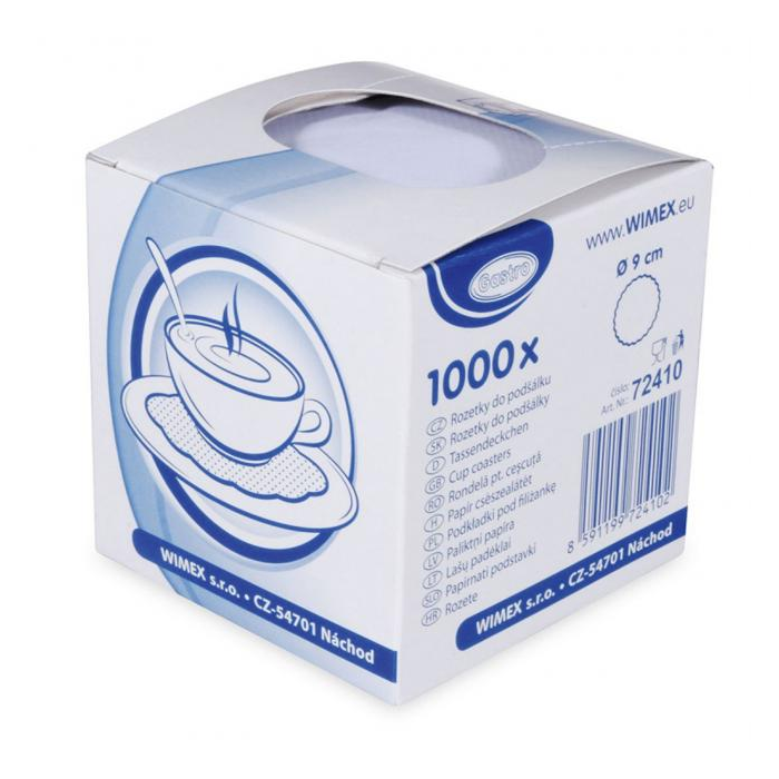 Biele papierové rozetky priemeru 9 cm do podšálky vhodné pre reštaurácie a bary pozdvihnú úroveň a pôžitok z nápojov. V balení 1000 ks.