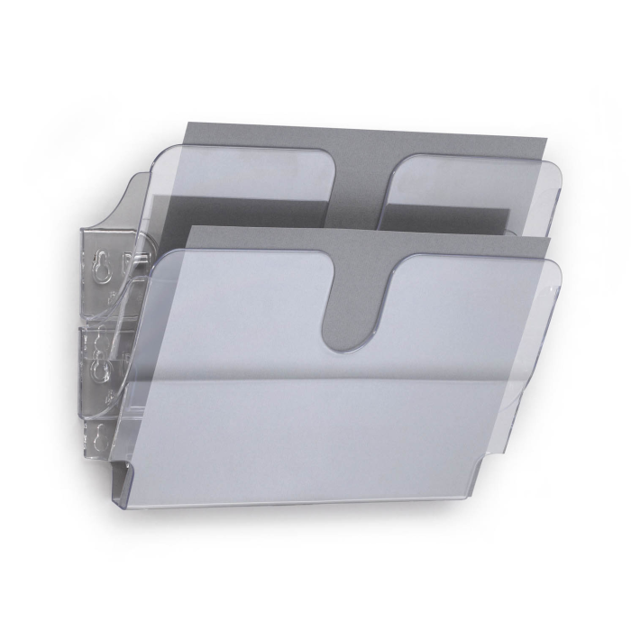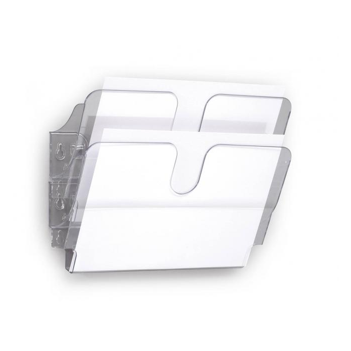 Nástenný stojan na prospekty FLEXIPLUS s 2 priehradkami na informácie vo formáte A4 na šírku, s plniacim objemom 23 mm.