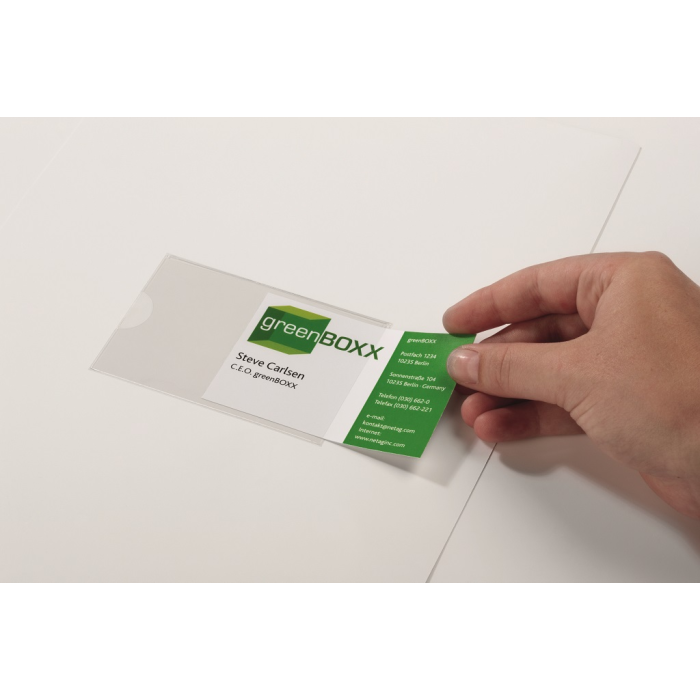 Samolepiace priehľadné vrecko vizitkové s otvorom zboku na zanechanie kontaktu na propagačných materiáloch, alebo napr. priloženie vizitky k lekárskym záznamom. Kvalitné a trvácne riešenie poskytuje priestor na mnohé kreatívne spôsoby použitia.