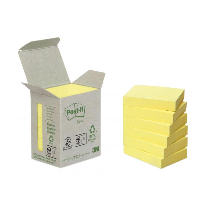 Samolepiaci bloček Post-it recyklované, 38x51 mm, žlté
