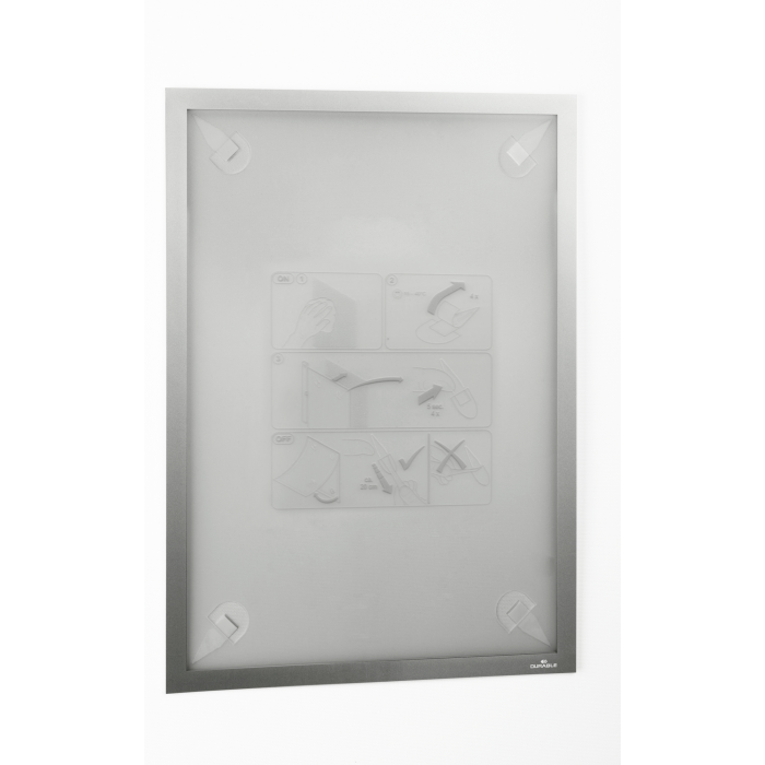 Samolepiaci informačný panel s prednou magnetickou časťou. Ideálny na vystavovanie plagátov, kľúčových informácií, špeciálnych oznamov alebo dôležitých čísel. Informácie sa ľahko vymieňajú a sú čitateľné z oboch strán, ak sa panel umiestni napr. na okno alebo priehľadné dvere. Vhodný na hladké a pevné povrchy. V prípade potreby je ľahko premiestniteľný bez potreby vŕtania. Formát A4, rámik strieborný.