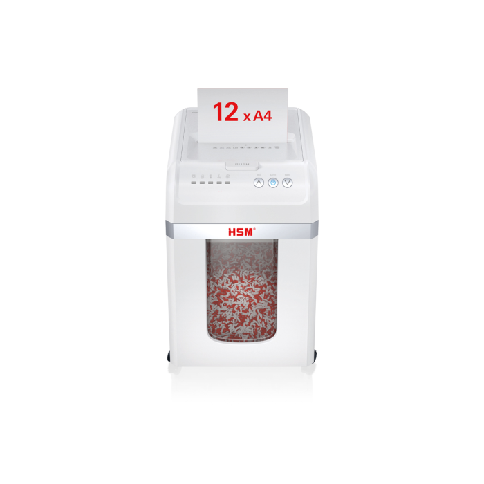 Plne automatický skartovač dokumentov vám poskytuje bezproblémové zabezpečenie údajov. Stačí vložiť stoh papiera, zatvoriť vrch - a zariadenie sa postará o zvyšok. Skartovač dokumentov s automatickým podávaním skartuje až 200 listov na častice, ktoré zodpovedajú úrovni zabezpečenia P-4 (4x12 mm), čím zaisťuje zabezpečenie údajov v súlade s GDPR.
