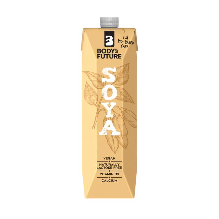 Sójový nápoj v ekologickom obale z obnoviteľných zdrojov- 80% obalu je vyrobených z obnoviteľných zdrojov: dreva a cukrovej trstiny. Pri jeho výrobe sa vyprodukuje o 17% menej CO2 v porovnaní s bežným kartónovým obalom. Bio based uzáver je vyrobený z polymérov na báze cukrovej trstiny.