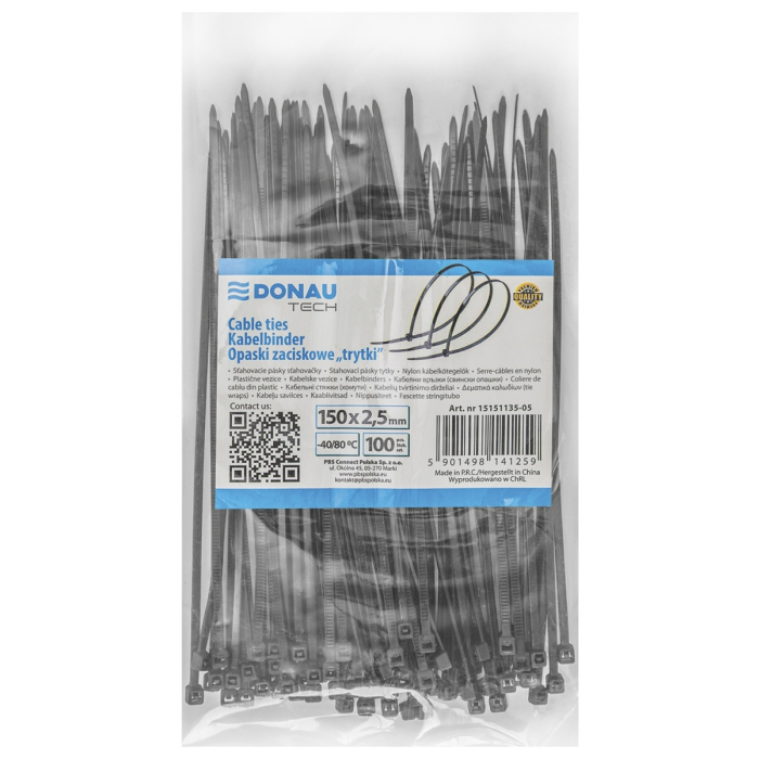 Sťahovacia páska na káble DONAU TECH 150x2.5mm, 100ks, čierna