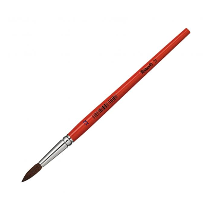 Guľatý vlasový štetec Pelikan 23, štandarndá kvalita, s hliníkovým úchytom, oranžová lakovaná rukoväť, hrúbka stopy uvedená ako číslo.