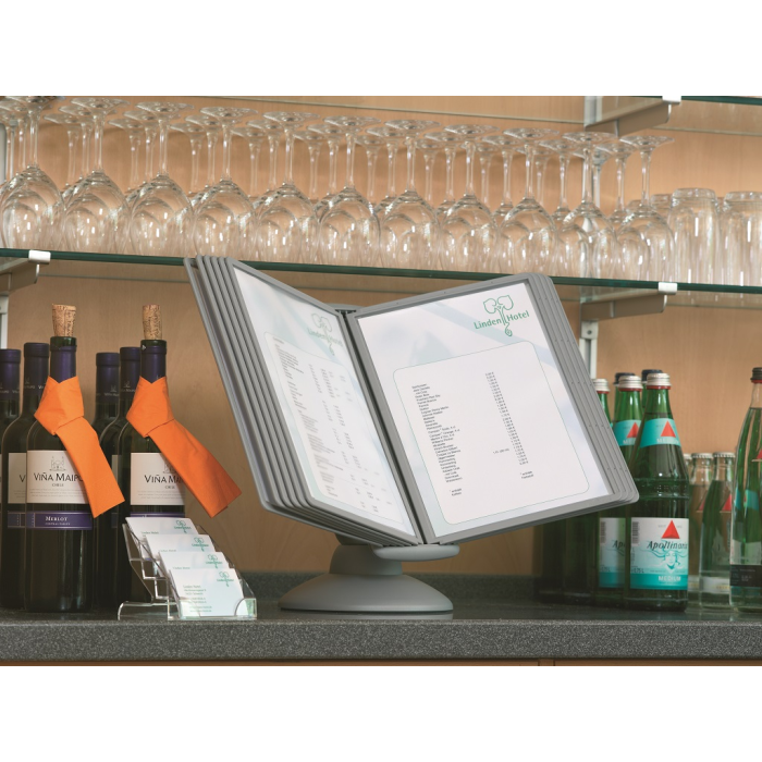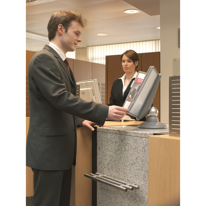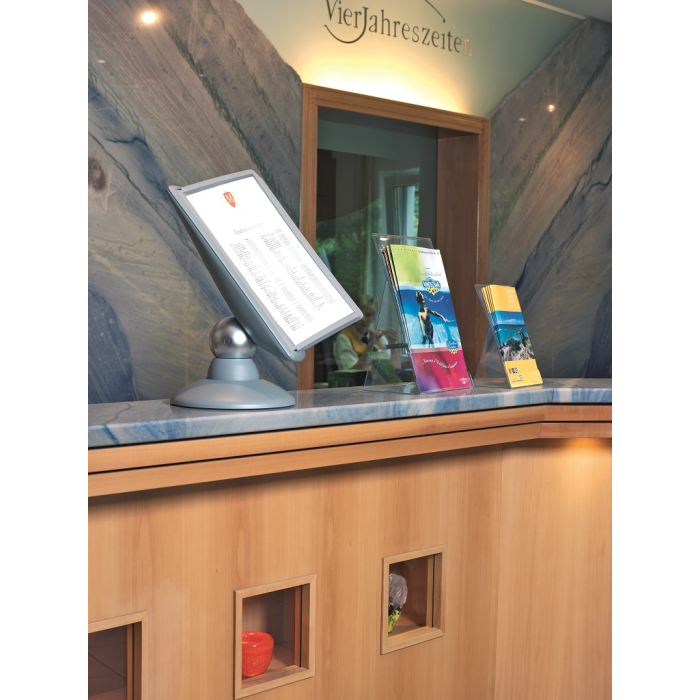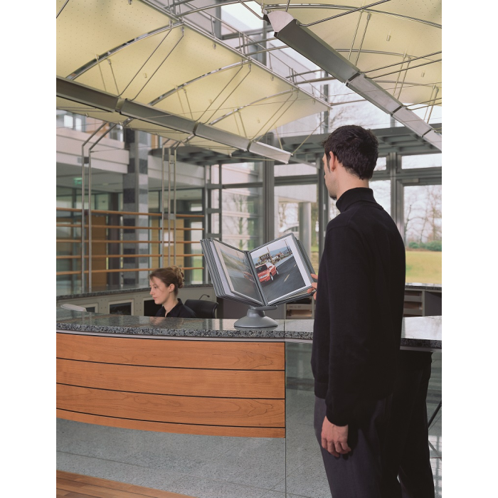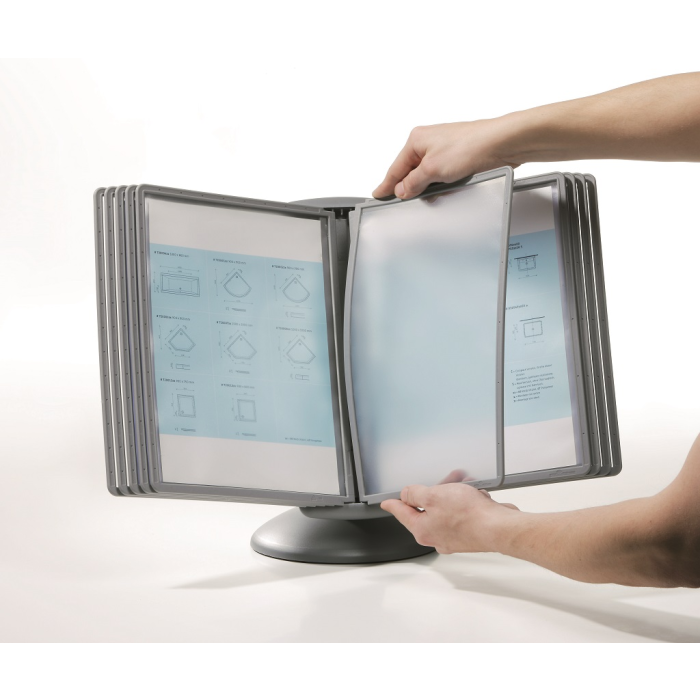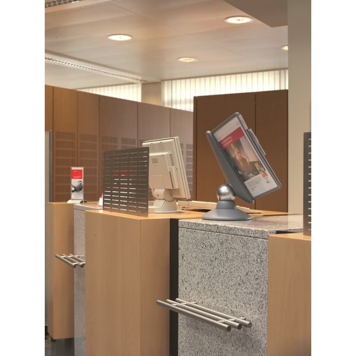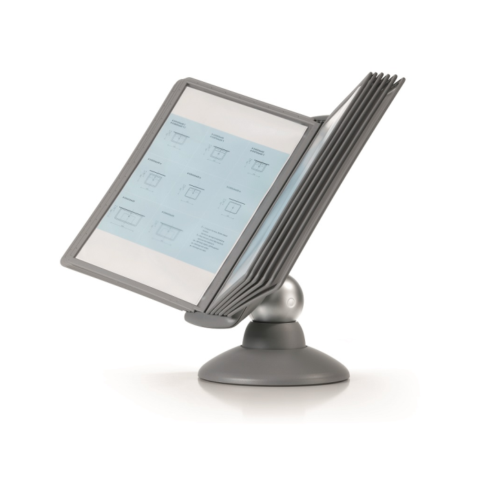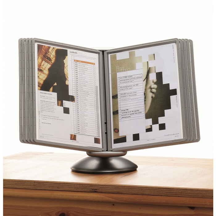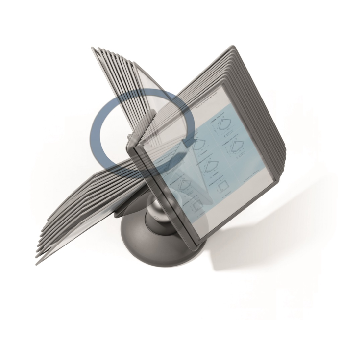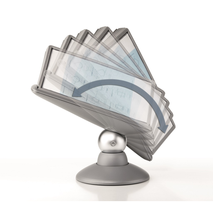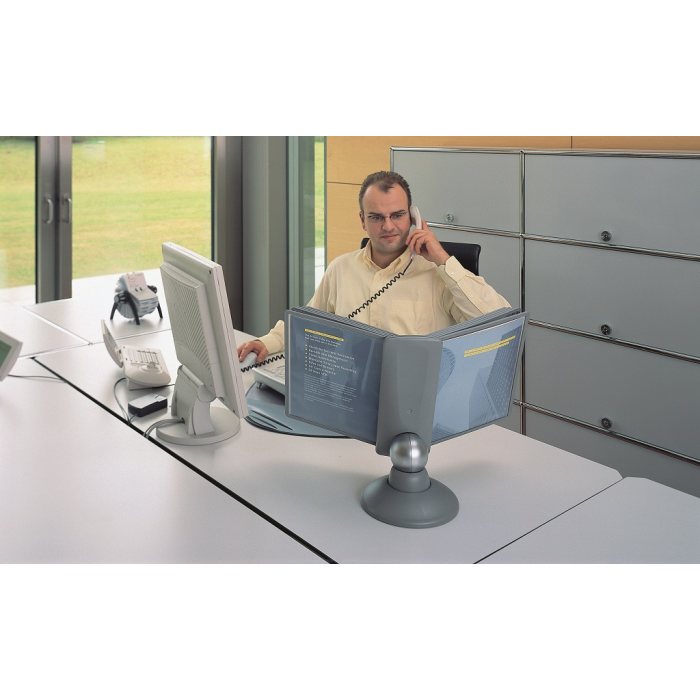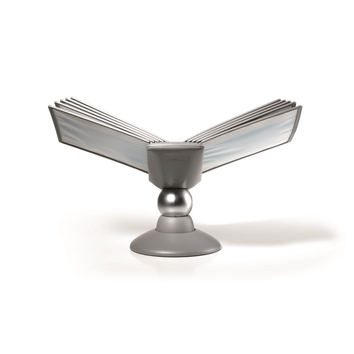 Unikátny dizajn spojený s kreatívnosťou a funkčnosťou stojana na stôl. Guľový kĺb zabezpečuje bezproblémové otáčanie panelov o 360 °, nastaviteľný uhol na čítanie medzi 25 ° a 70 °. Je dodávaný s 10 panelmi. Farba: kĺb lesklá grafitová, držiak a panely matná grafitová.