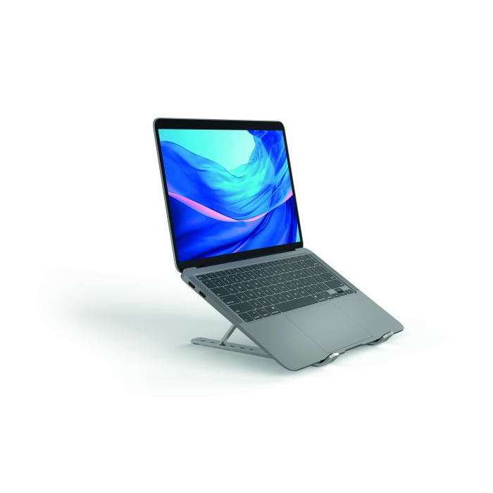 Univerzálny, nastaviteľný stojan pre notebooky a tablety do 15”. Uľahčuje prácu vďaka ergonomickej a flexibilnej nastaviteľnosti výšky a uhla sklonu. Protišmykové gumené podložky chránia zariadenie pred poškriabaním. Priestorovo úsporný, skladací a ľahko prenosný. Výškovo nastaviteľný v 6 jednoduchých krokoch. Maximálna nosnosť: 5 kg. Súčasťou balenia je priaktická cestovná taška.