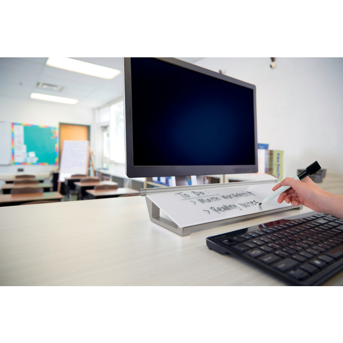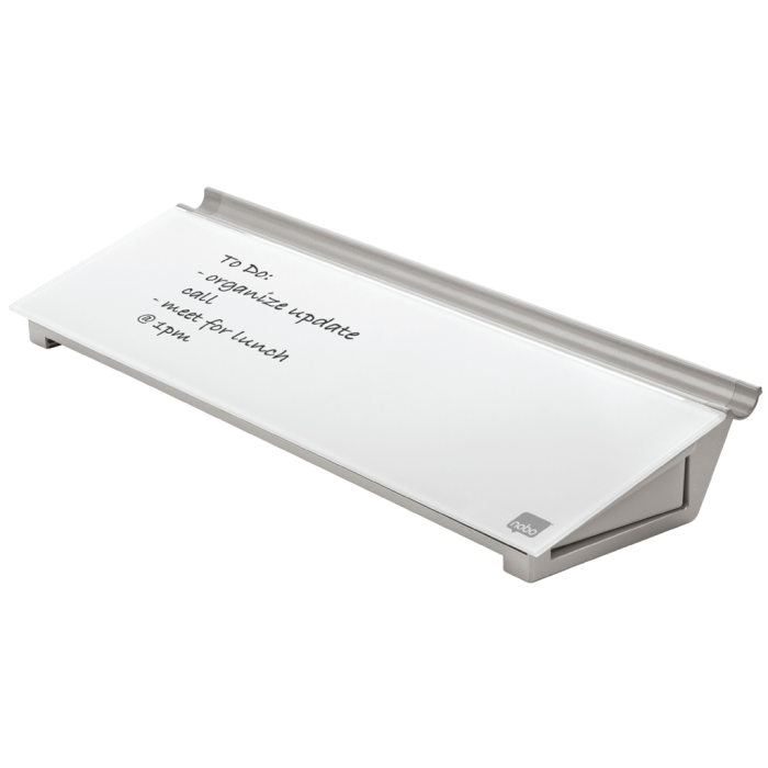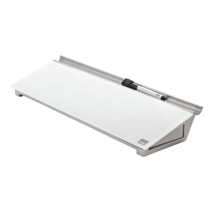 Sklenená stolová podložka je unikátny doplnok na stôl na písanie poznámok a odkazov. Bezrámčekový dizajn a sklenený povrch tabule ponúka najvyššiu odolnosť proti šmuhám od atramentu a škrabancom. Písacia plocha je vždy poruke a písanie poznámok je tak veľmi pohodlné. Výrobok sa perfektne hodí do priestoru za klávesnicou. Skrytý úložný priestor vnútri vám pomôže si udržať čistý pracovný stôl. Dodávané s minipopisovačom Nobo s hubkou na viečku.