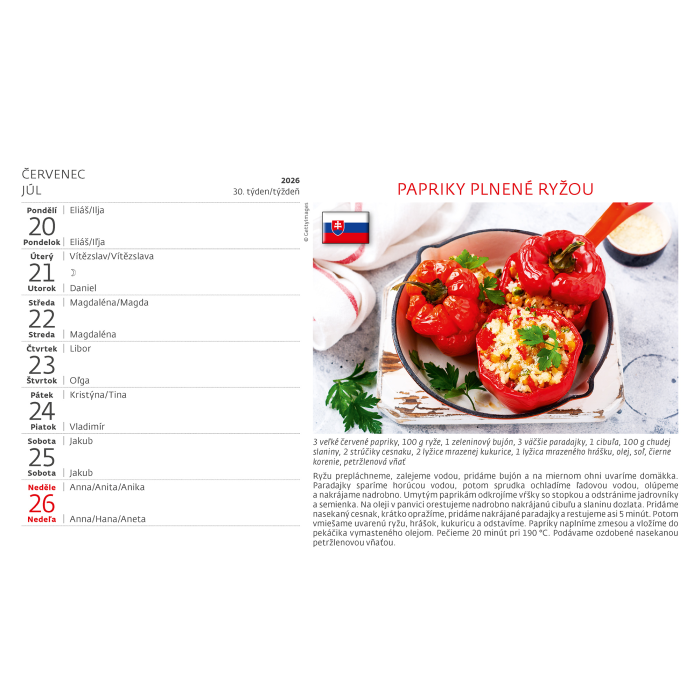 Stolový kalendár riadkový 22,6x13,9 cm - Česko-slovenská kuchárka 2026