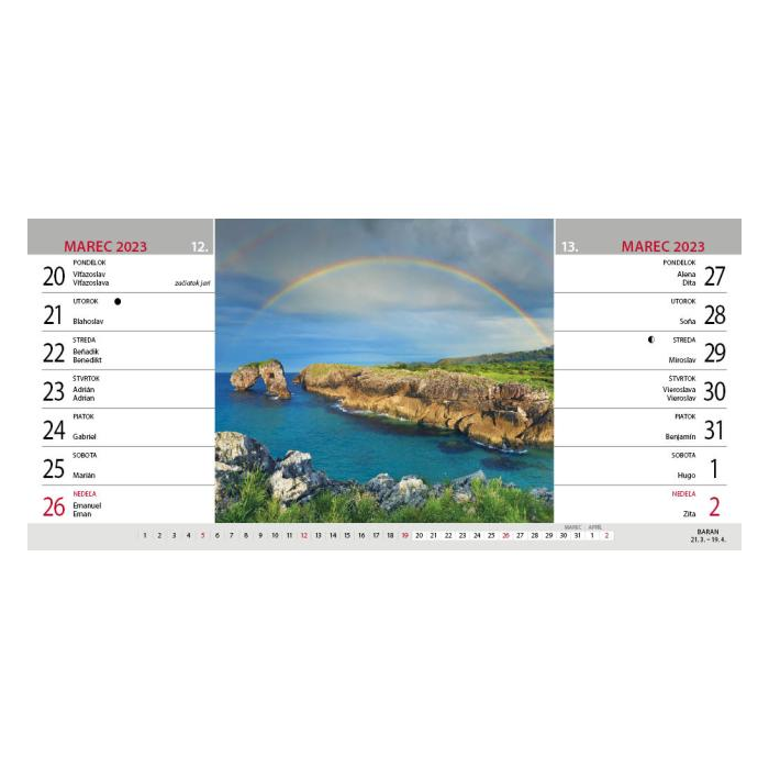 Objavujte krásy sveta priamo z pohodlia vášho pracovného stola! Tento praktický dvojtýždenný stolový kalendár vás počas celého roka prevedie tými najkrajšími a najzaujímavejšími miestami planéty - od exotických pláží, cez historické mestá až po nádherné prírodné scenérie. Každý list kalendára predstavuje novú destináciu doplnenú o nádhernú fotografiu a stručný popis miesta. Nech už plánujete dovolenku alebo len snívate pri káve, tento kalendár je skvelým spoločníkom na každý deň. Je to spojenie praktického plánovania s túžbou po dobrodružstve. Cestujte svetom vďaka každej otočenej strane kalendára.