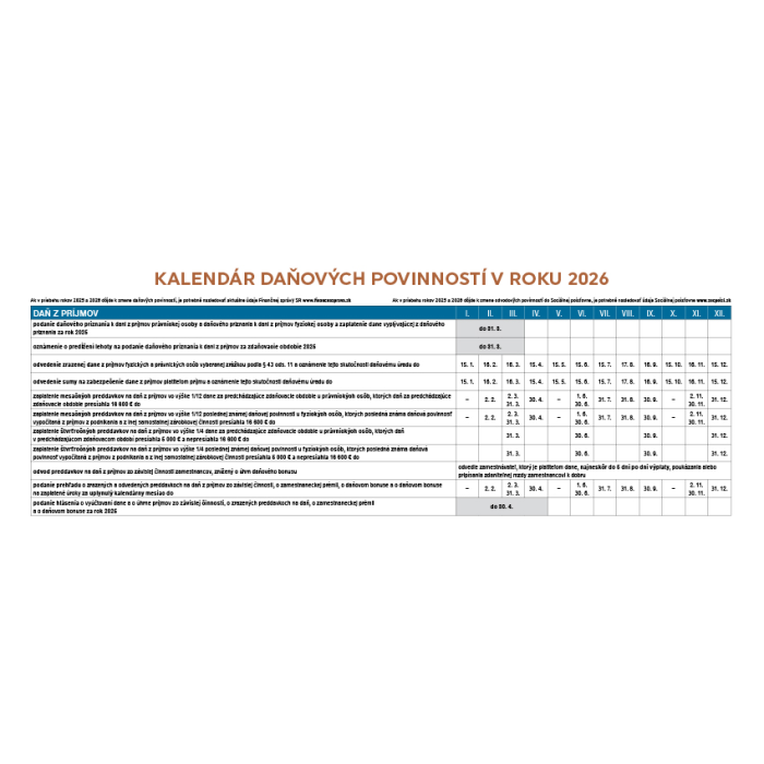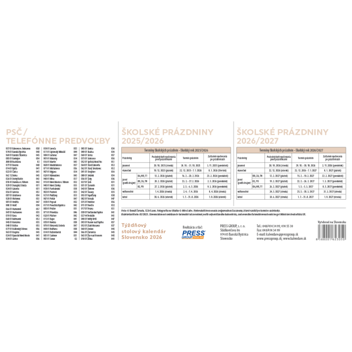 Stolový kalendár stĺpcový 30 x 12 cm - Slovensko 2026