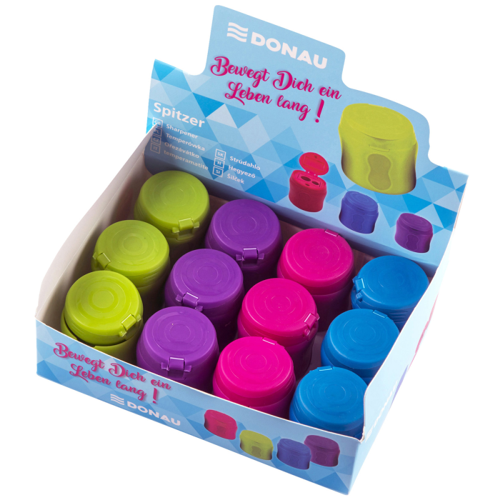 Strúhadlo dvojité s viečkom DONAU pre pravákov, mix farieb, displej 12 ks