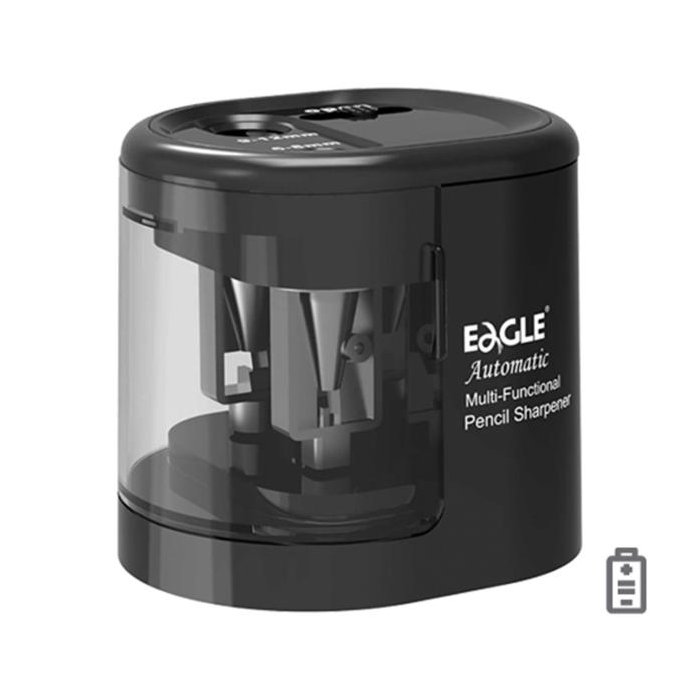 Automatické strúhadlo na ceruzky dvoch rozmerov 6-8 mm a 9-12 mm. Strúhadlo obsahuje odpadovú nádobu. Napájanie na batérie - 4x AA 1,5V nie sú súčasťou balenia. Rozmer: 84x72x76 mm.