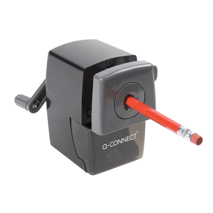 Strúhadlo stolové manuálne na ceruzky s rukoväťou má veľký, priehľadný kontajner na hobliny pre štandardné 8 mm ceruzky odolná konštrukcia s odolnou špirálovou čepeľou, funkcia automatického zastavenia.