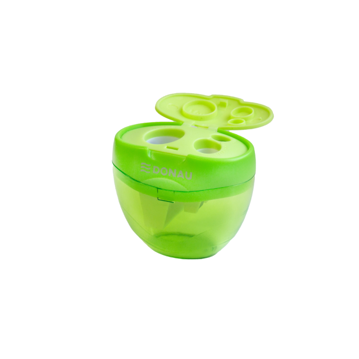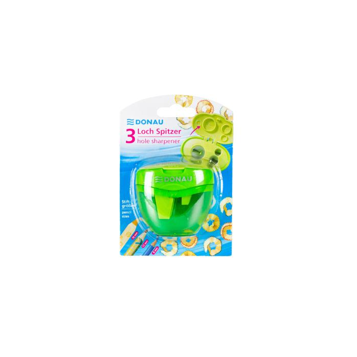 Praktické strúhadlo na konzervy s 3 otvormi a viečkom - ideálne na ceruzky, farebné ceruzky a najmä na extra hrubé farebné ceruzky 3 v 1. Vhodné pre ceruzky s priemerom od 8 mm do 16 mm, kompatibilné s okrúhlymi, šesťuholníkovými a trojuholníkovými ceruzkami. Robustné plastové puzdro v sviežej zelenej farbe zaisťuje odolnosť a pohodlnú manipuláciu. Nevymeniteľná čepeľ zaručuje konzistentné ostrenie, zatiaľ čo integrované viečko zabraňuje unikaniu triesok a udržiava veci v poriadku. Strúhadlo sa predáva jednotlivo v blistrovom balení s euro otvorom na zavesenie, ideálne na vystavenie v maloobchode. Pre väčšie množstvá je k dispozícii aj v balení po 12 kusoch v malom vystavení - ideálne na predaj a skladovanie v školách, kanceláriách alebo remeselníckych priestoroch.