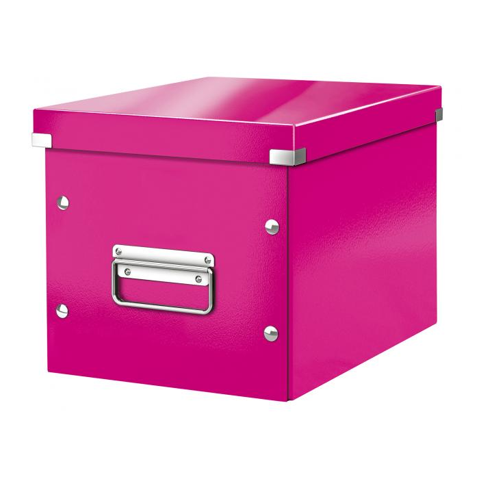 Skladacia archivačná krabica v tvare kocky je ideálna na ukladanie vysokých predmetov alebo vecí oblého tvaru. Veľkostne sa dokonale zmestí do štandardných policových systémov. Vyrobená zo silného kartónu. Laminovaný povrch a kovové prvky na rohoch poskytujú skvelú ochranu, odolné kovové úchyty slúžia na pohodlný prenos. Moderný design, ktorý vyzerá skvelo doma i v kancelárii. Rozmery (š × v × h) 260 × 240 × 260 mm. Farba metalická ružová.