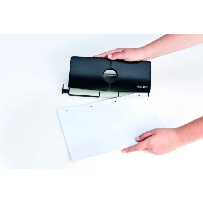 Kancelárska štvordierovačka s posuvným pravítkom a aretáciou v kovovom prevedení. Rozpätie dier 8 cm. Hmotnosť 1200 g. Záruka 10 rokov. Farba: čierna/sivá. Kapacita dierovania 25 listov.