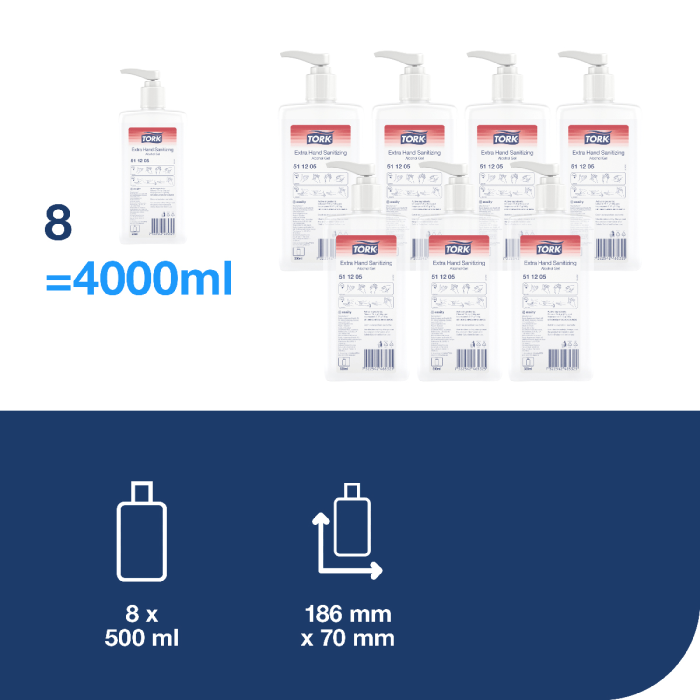 Tork Extra gélový dezinfekčný prostriedok na ruky s alkoholom efektívne ničí mikroorganizmy a pomáha tak predísť šíreniu infekcií. Najúčinnejší gél v ponuke značky Tork s účinnosťou voči baktériám, kvasinkám a všetkým druhom vírusov. Ideálne na každodennú hygienu rúk. Vhodné na použitie v zdravotníctve. Ľahký, osviežujúci gél je nelepivý na rukách a dermatologicky testovaný. Vhodné pre všetky Tork zásobníky na mydlá a dezinfekčné prostriedky (S4).