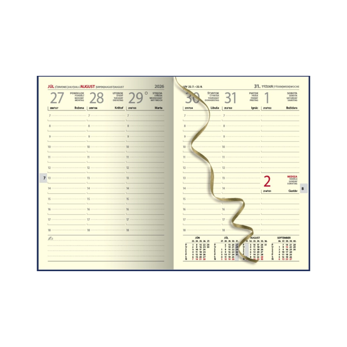 Obľúbený týždenný diár má oderuvzdorný povrch s motívom folklórnej stuhy. Efektná razba fóliou a 3D lak vytvárajú dokonalý dizajn. Jediný svojho druhu na trhu.
