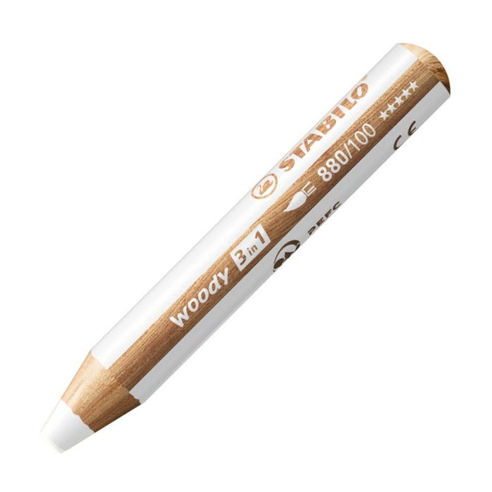 STABILO Woody 3 v 1 je multifunkčná farbička, vodovka a voskovka v jednom, ktorá vie kresliť na papier, na tmavý podklad, kartón, sklo, kov, drevo alebo trebárs aj na gumáky. Ozdobiť si drevený rámik, okno, chlebník alebo plechovku na ceruzky je hračka. Deti ju milujú a rodičia môžu zostať v pokoji, pretože farbu možno z ručičiek aj z hladkého povrchu dobre zmyť vodou s mydlom alebo saponátom. Tuha obsahuje osemkrát viac farby než bežná farbička, nemožno ju zlomiť a hodí sa na extra dllllllllhé kreslenie a na veľké umelecké diela: vďaka hrubej tuhe je možné všetko rýchlo vyfarbiť. Vďaka svojmu tvaru padne woody výborne do detskej ručičky. K dostaniu je 18 atraktívnych farieb, vrátane zlatej a striebornej. Zakúpiť sa dá v baleniach alebo jednotlivo. XXL tuha je uložená v tele, ktoré je vyrobené z dreva certifikovaného PEFC® (PEFC/04-31-1728) a je teda šetrná k životnému prostrediu.