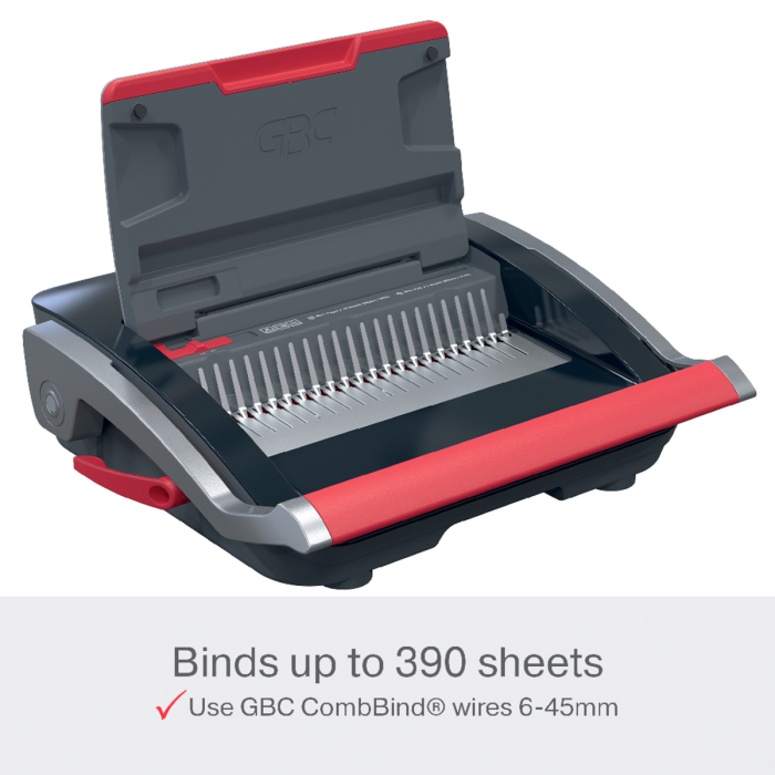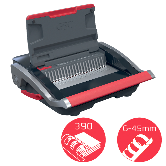 • presekne až 25 listov papiera s gramážou 80 g/m² formátu A5/A4 naraz a efektívne zviaže až 390 listov naraz pomocou 45 mm chrbtov