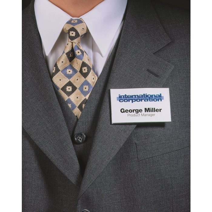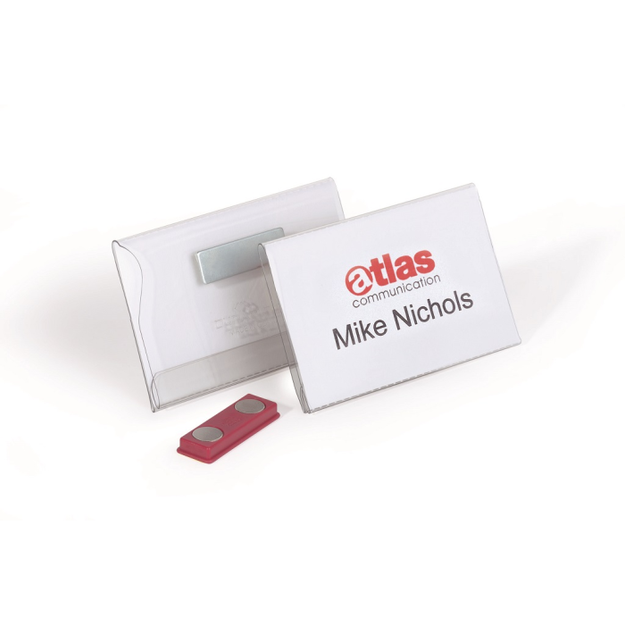 Visačka s magnetickým uchytením. Jednoduché a šetrné upevnenie na najjemnejšie odevy. Malá klopa pre upevnenie na vrecko košele, saka alebo bundy. Vyrobená z tvrdého PVC. Dodávaná s prázdnou bielou kartičkou. Rozmery menovky 90×54 mm. Nevhodná pre ľudí s kardiostimulátorom. V balení 25 ks.