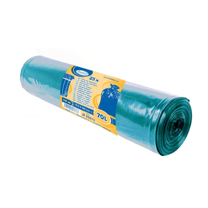 Zaväzovacie vrecia na odpad 70 l LDPE, Typ 40 modré 57,5 x 100 cm. 1 rolka = 25 ks. Hrúbka 23 mic.