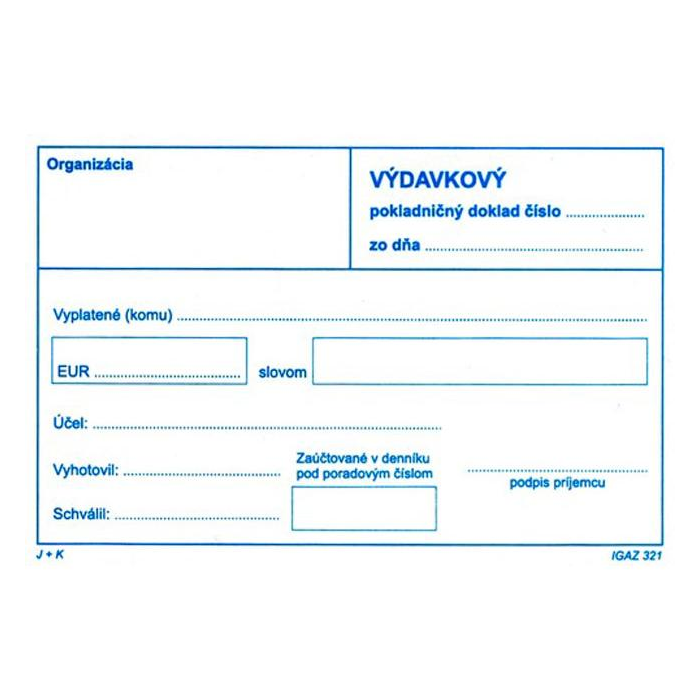 Výdavkový pokladničný doklad bez DPH, samoprepis, formát A6, blok 100 listov.