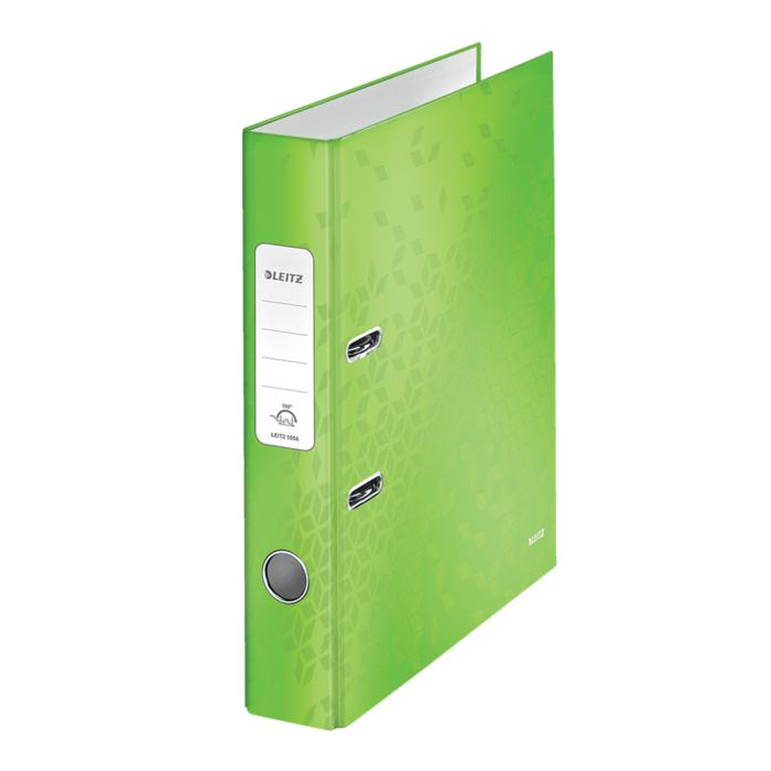 Pákový zakladač rady WOW v žiarivej metalickej zelenej farbe s dvojfarebným efektom. Unikátna patentovaná mechanika Leitz 180° poskytuje širšie otvorenie, možnosť zakladania väčšieho množstva papierov a o 20 % rýchlejšiu prácu so zakladačom. Vybavený chrbtovým krúžkom, rado zámkom a samolepiacim chrbtovým štítkom, ktorý môže byť v prípade potreby odstránený. Šírka chrbta 5 cm, kapacita 350 listov. Väčšie balenie 10 ks.