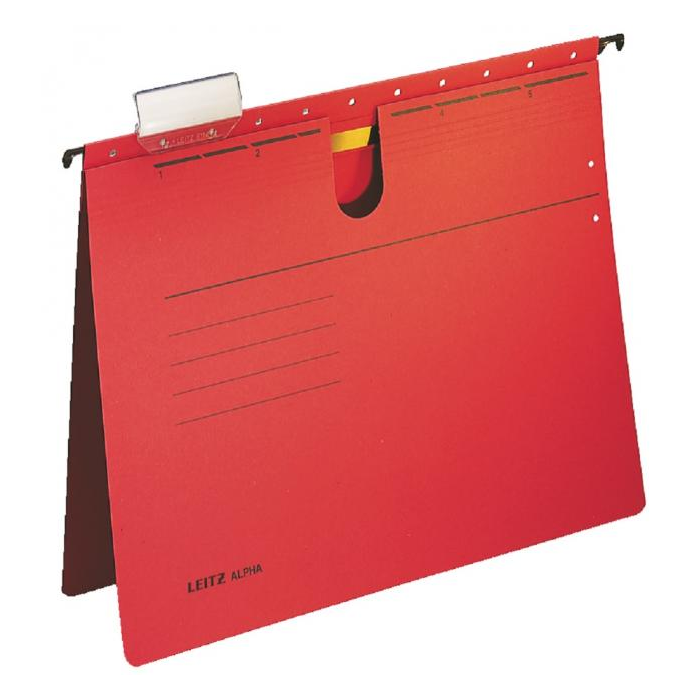 Obal vhodný na dierované dokumenty do formátu A4 s výrezom na palec. Pevne zachytený chrbát rýchloviazača umožňuje zakladanie jednotlivých spisov. Súčasťou obalu je plastový rozlišovač s možnosťou umiestnenia na vodorovnú alebo zvislú stranu obalu. Väčšie balenie 25 ks. Farba: červená