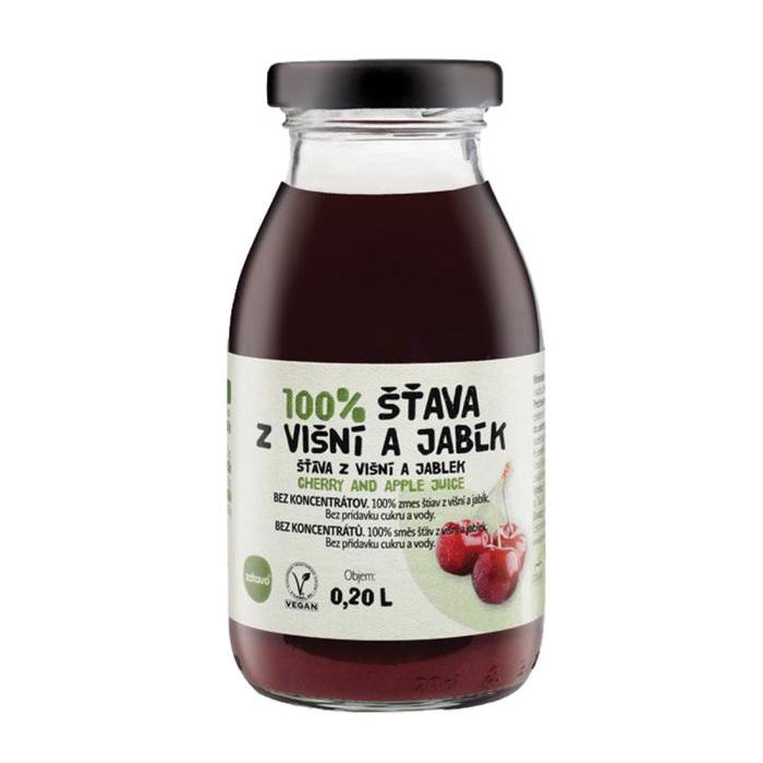 100 % zmes štiav bez alergénov a bez prídavku cukru a vody. Obsahuje iba prírodné cukry. Príchuť višňovo-jablková. Objem 0,2 l. Balenie 10 x 0,2 l.