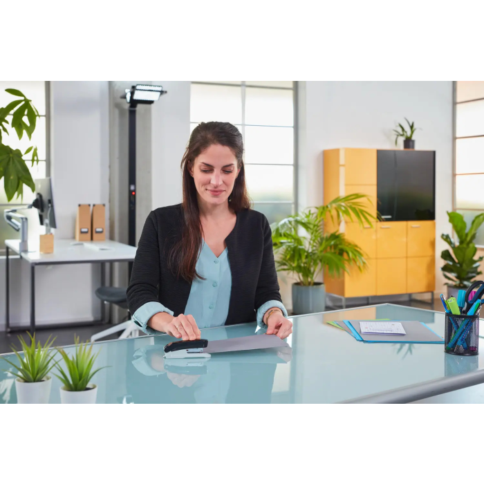 Praktická a ľahká zošívačka kancelárska zošívačka novej kolekcie Evolution s plastovým vrchným dielom a integrovanou kovovou rozošívačkou na zadnej časti. Kapacita náplne 100 spiniek veľkosti  10. Kapacita zošitia 15 listov papiera. Možnosť využitia kancelárských zošívačiek Novus sa nazýva spinkovanie. Konce spiniek sa neohýbajú, ale sa kolmo zapustia do podložky.