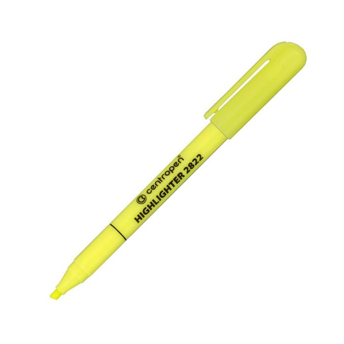 Zvýrazňovač osadený klinovým hrotom so šírkou stopy 1 - 3 mm. Plnený fluorescenčným atramentom, vhodným na všetky druhy papierov, vrátane kopírovacích a faxových. Väčšie balenie 10 ks. Farba: žltá Šírka stopy: 1-3 mm