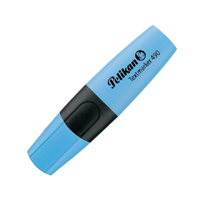 Zvýrazňovač Pelikan 490 osadený klinovým hrotom so šírkou stopy 1 - 5 mm. Plnený atramentom na vodnej báze, vhodným na všetky druhy papierov, odolný voči vysychaniu. Balenie v krabičke. Farba modrá.